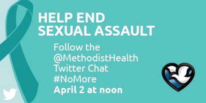 Please take a moment to follow @MethodistHealth’s #NoMore Twitter Chat. Together, we can raise awareness for sexual assault, domestic violence and sex trafficking resources in our area. These issues are more prevalent than you may think — and they happen close to home. pic.twitter.com/Rbf5lQOSyt