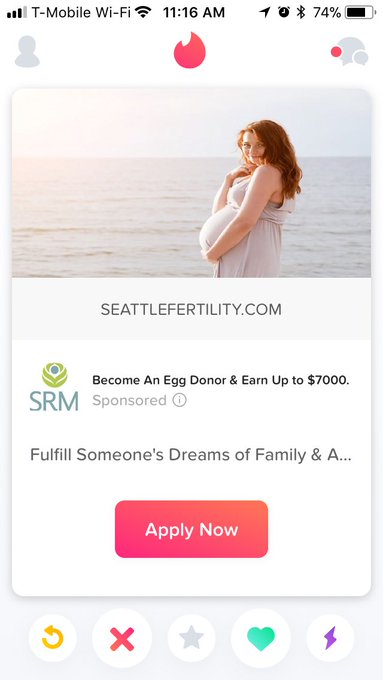 You know which demo really wants to increase their risk of pregnancy with egg donation? Singles lurking on casual dating apps! pic.twitter.com/PFqF4TwG1S